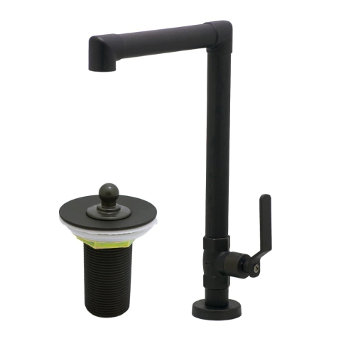 KIT 01 TORNEIRA LAVATÓRIO BANHEIRO BANCADA INDUSTRIAL RUSTICA PRETO FOSCO ALAVANCA 1/4 DE VOLTA LUXO + 01 VÁLVULA LAVATÓRIO BANHEIRO PIA INDUSTRIAL PRETO FOSCO LUXO