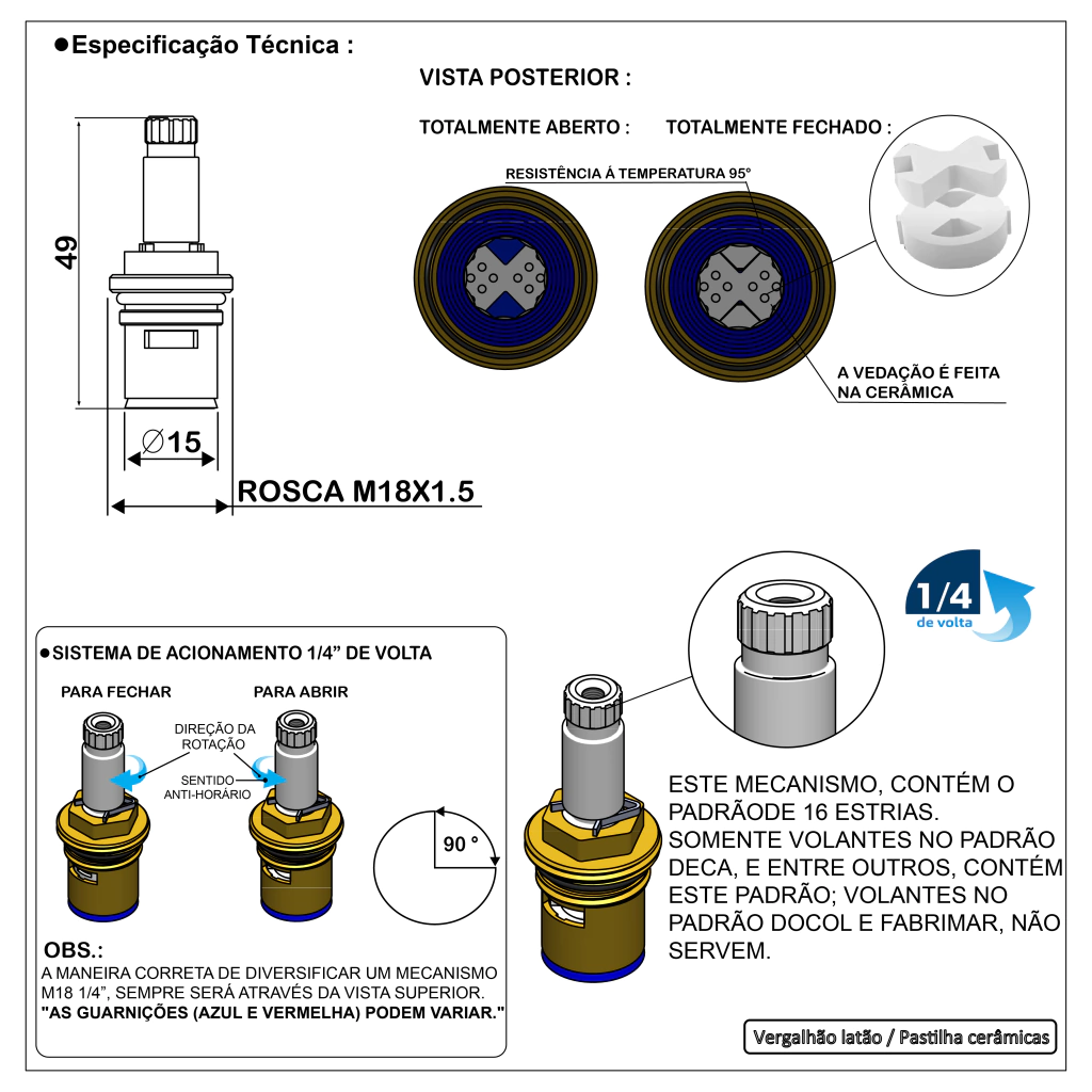 Produzido em Latão e Pastilha de Fechamento Cerâmico