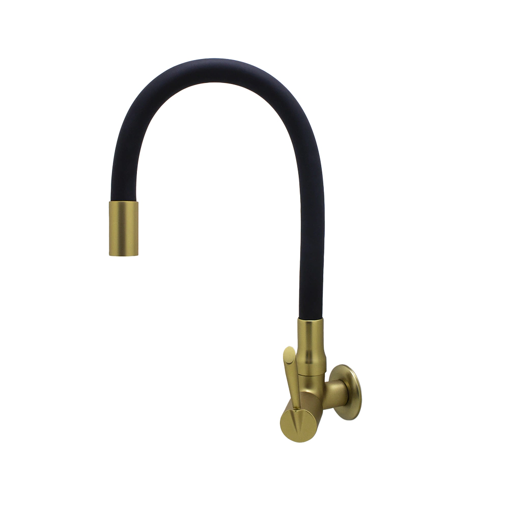 TORNEIRA PIA PARA COZINHA DE PAREDE ALAVANCA PRETO FOSCO E DOURADO (GOLD FOSCO) GOURMET FLEXÍVEL LUXO 1/4 DE VOLTA