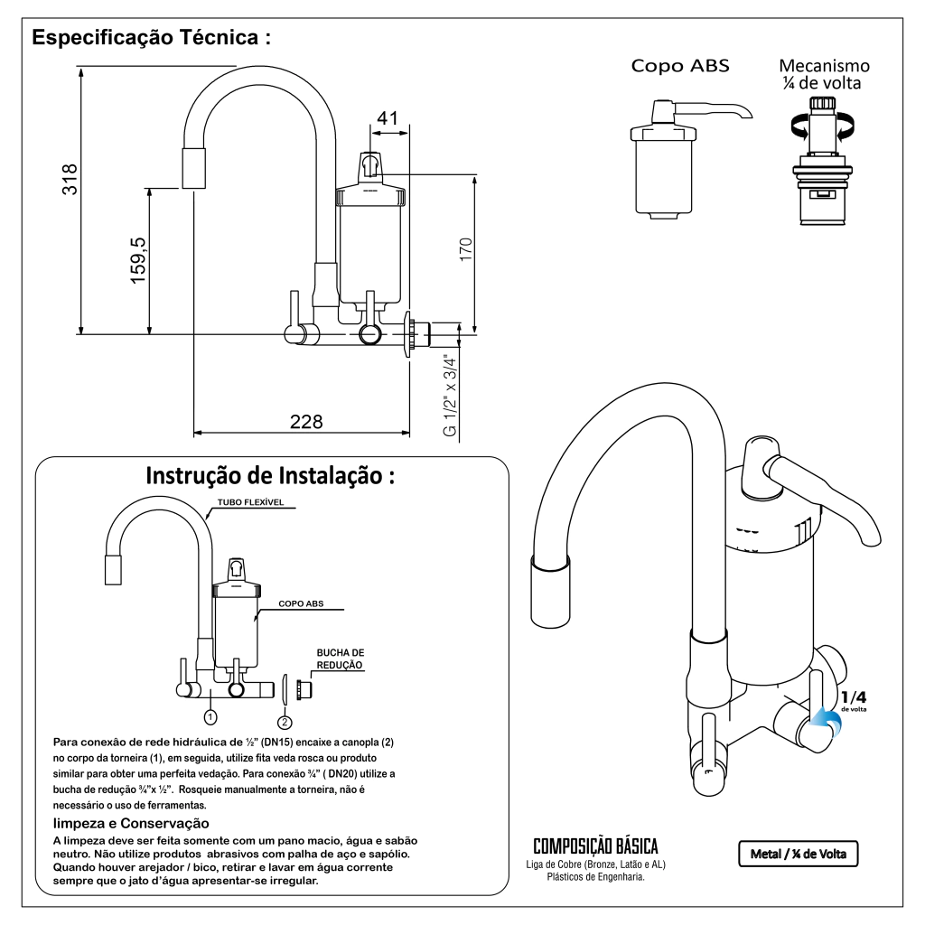 - Bitola: ½” com Bucha de Redução para ¾ “