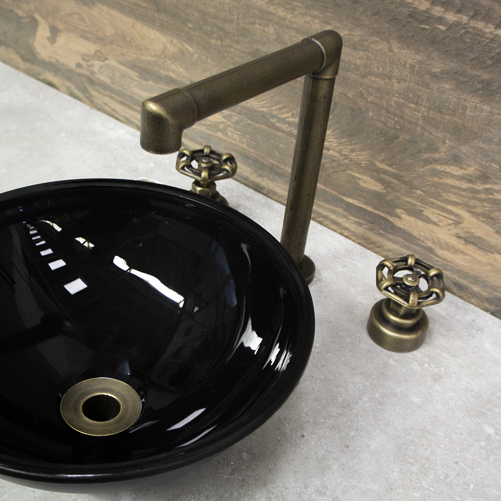 Torneira lavatório misturador industrial rústico ouro velho