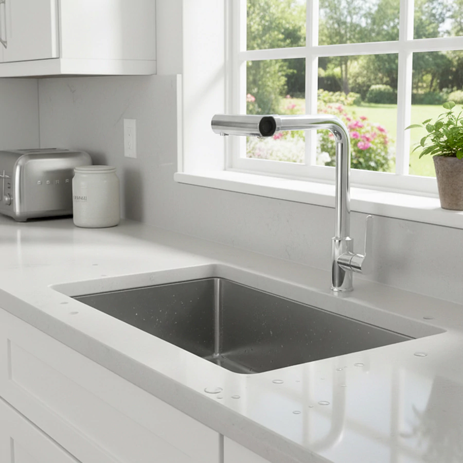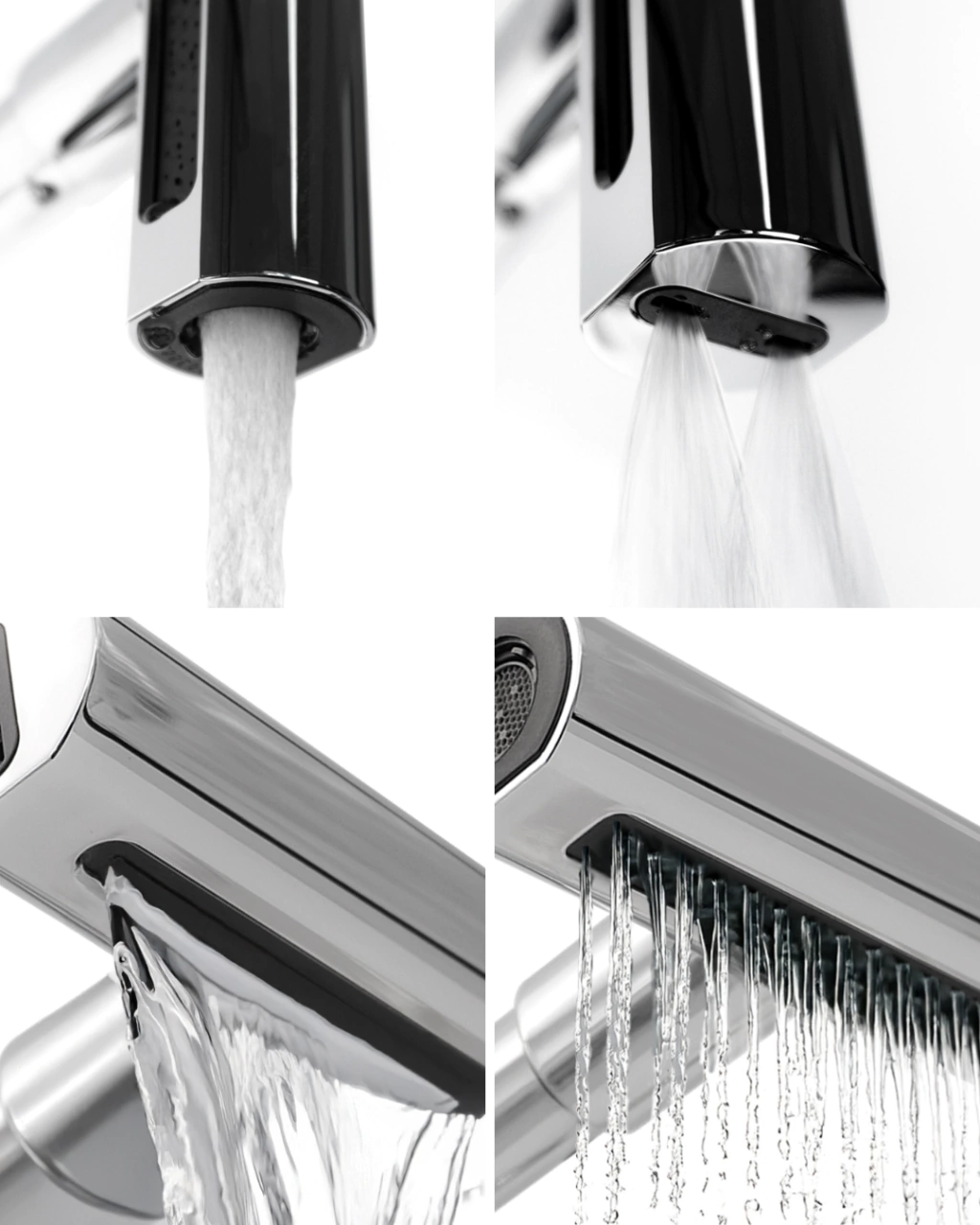 Torneira Gourmet de Cozinha Cromada 4 Jatos | Bica Móvel | Design Premium Transforme sua cozinha com uma torneira moderna, sofisticada e muito mais eficiente! Este modelo gourmet cromado possui um grande diferencial: 4 jatos de água, oferecendo mais potência, versatilidade e controle para facilitar o dia a dia. A troca de jato proporciona desde um fluxo suave para tarefas delicadas até um jato mais concentrado e forte para remoção de sujeira pesada, tudo isso com um acabamento cromado premium que garante brilho intenso e alta resistência ao tempo. Diferenciais que vendem MUITO: * 4 jatos de água mais força, limpeza eficiente e versatilidade * Bica móvel (giratória) alcança toda a área da pia * Acabamento cromado premium brilho intenso e alta durabilidade * Modelo gourmet moderno design sofisticado para cozinhas planejadas * Acionamento lateral suave conforto no uso diário * Instalação em mesa/bancada Por que o recurso de 4 jatos é tão procurado? * Economia de água com fluxo mais direcionado * Remoção mais fácil de gordura e sujeira difícil * Mais rapidez no preparo e na limpeza * Torneira se adapta a qualquer necessidade da cozinha * Aumenta a percepção de produto premium (melhor conversão!) Especificações Técnicas: * Tipo: Torneira de Cozinha Gourmet * Acabamento: Cromado * Funções: 4 jatos de água * Estilo: Moderno / Premium * Bica: Alta, móvel, giratória * Instalação: Mesa / Bancada * Material: Liga metálica de alta qualidade * Uso: Cozinha / Área Gourmet / Lavanderia * Acionamento: Lateral Garantia de fábrica: 5 anos
