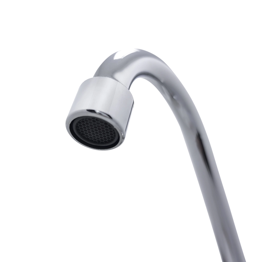 A torneira gourmet flexível possui arejador moderno que torna a saída de água espumosa, lisa e com menos pressão, isso minimiza salpicos e permite uma economia de água de até 30%.