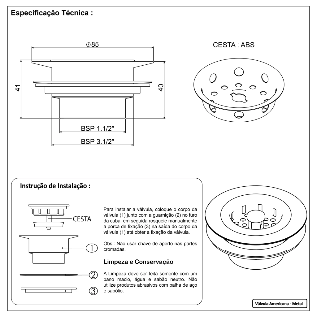 Válvula De Pia Cozinha Americana Escoamento Cromado 3.1/2 é um item extremamente necessário em sua cozinha. Acompanha a cestinha que impede aquelas sujeirinhas que ficam na pia de descer para o encanamento, evitando assim entupimentos e mantém uma estética agradável.